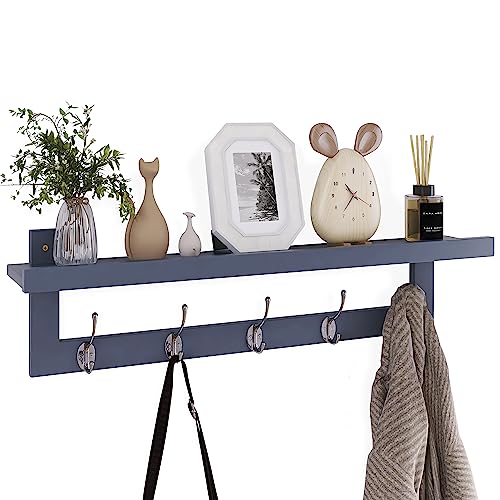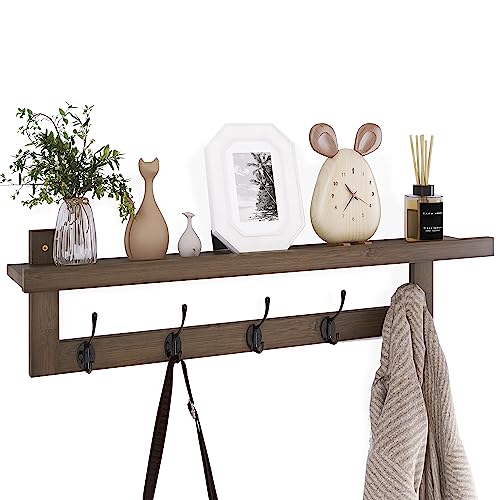 YMYNY Klädhängare hylla väggmonterad, klädkrokar set med 2, entré klädhängare med 4 dubbla krokar, 80 cm vägg flytande hylla med hattställ, för kök, sovrum, badrum, rustik brun HWS001H-2