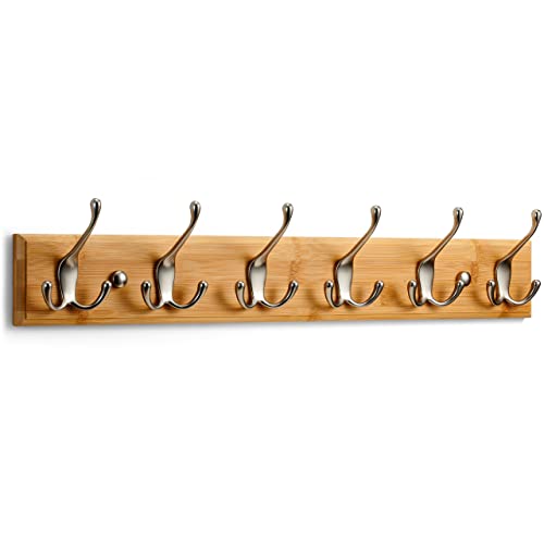 LARHN Klädkrokar för Vägg - Klädhängare Vägg med 6 Krokar i Matt Nickel - 59 cm