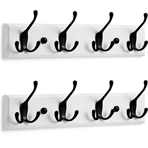 LARHN Vita Klädkrokar för Vägg (2 st.) - Klädhängare Vägg med 4 Krokar i Svart - 42 cm