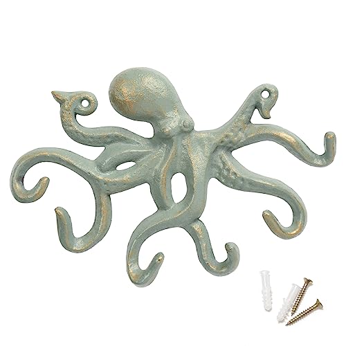 ChasBete Bläckfisk Klädhängare för vägg, rustik nyckelhållare i gjutjärn, 22,5 cm kraftig dörrkrok med 6 tentakler - brons