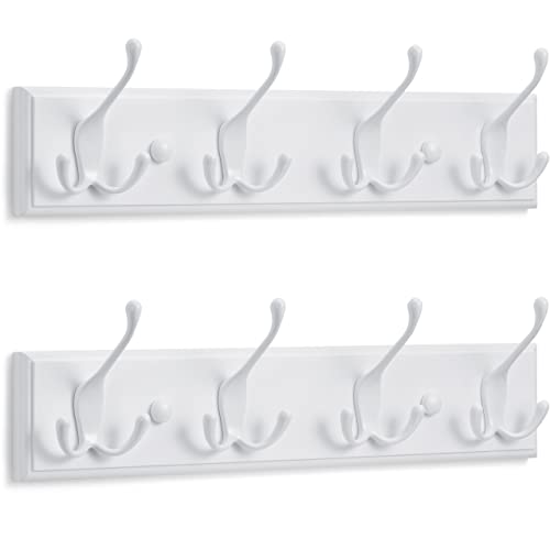 LARHN Vita Klädkrokar för Vägg (2 st.) - Klädhängare Vägg med 4 Krokar i Vit - 42 cm