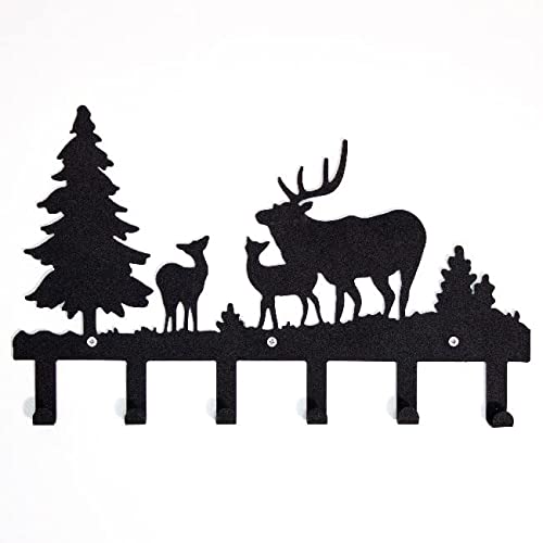 Homemania HOMESRV-128 klädhängare jul-djur, skog, hjortar med krokar: dekoration, vägg-entré, svart metallhall, 42 x 2 x 28 cm