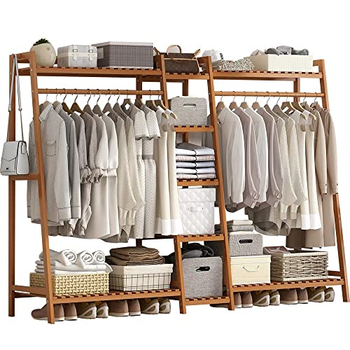 Klädhängare klädhängare i bambu,fristående klädhängare med hylla,öppet garderobssystem med klädstång,klädhäst öppen