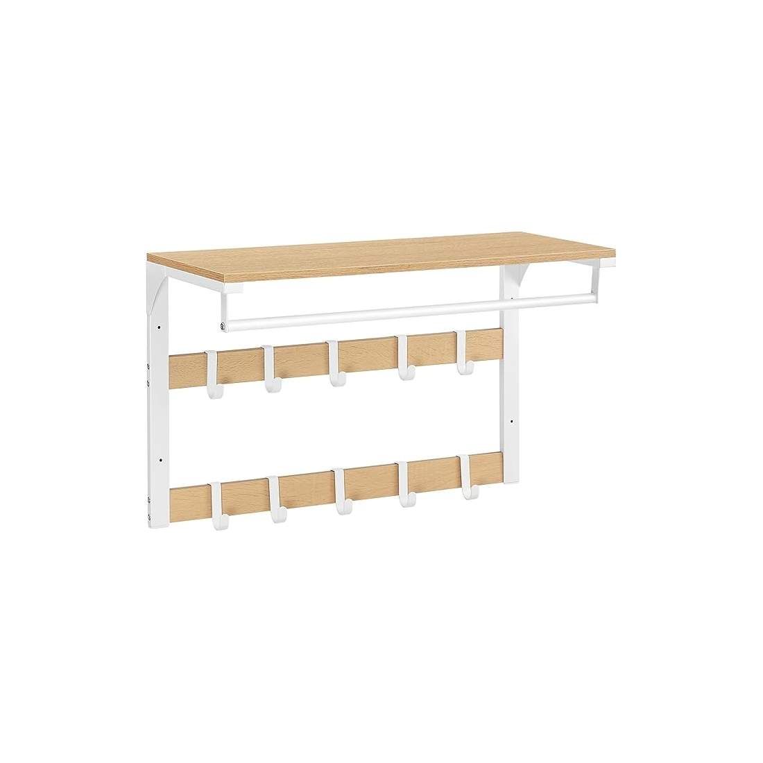 Väggmonterad klädhängare, vägghylla med 10 avtagbara krokar, klädstång, klädkrokar med hylla