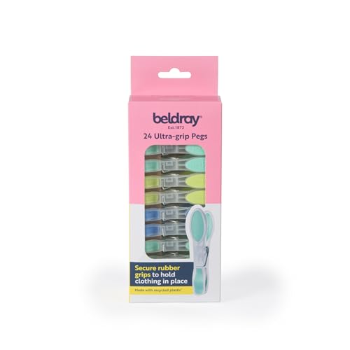 Beldray 24 ultra-grepp klädnypor – säkert gummigrepp, tvättlinepinnar, vindtät klädklämma, tillverkad av återvunnen plast, halkfritt klädgrepp, fukt och rostbeständig