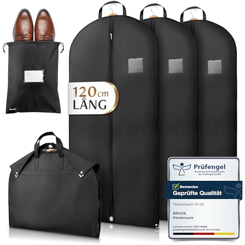 Bruce.® 3x Klädpåse inkl. väska för skor - [120x60cm] - Dammskydd 120 gsm - andningsbar kostymväska för resor och förvaring - dammskydd av högsta kvalitet - Reseklädväska - Klädskydd
