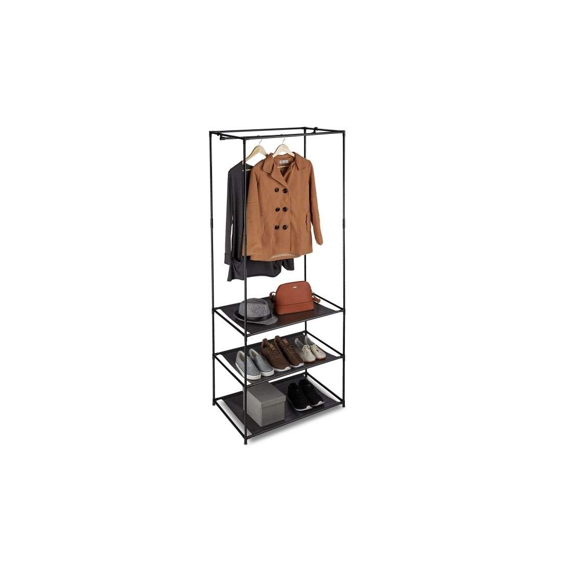 Klädställ med skohylla och stabil stålram – Mattsvart