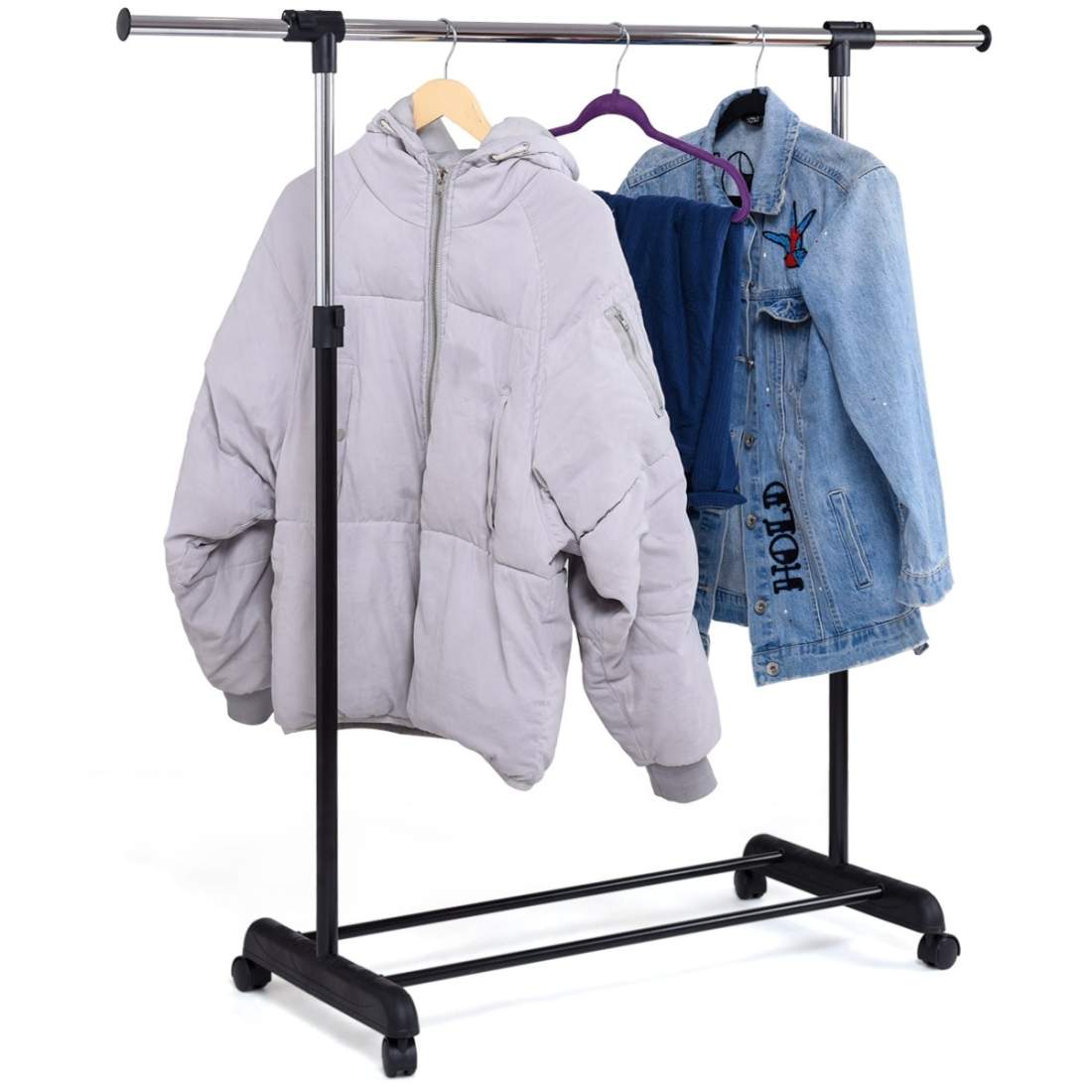 Universal dubbelt fristående klädställ med justerbar höjd, hjul, 2 skenor ModernHome