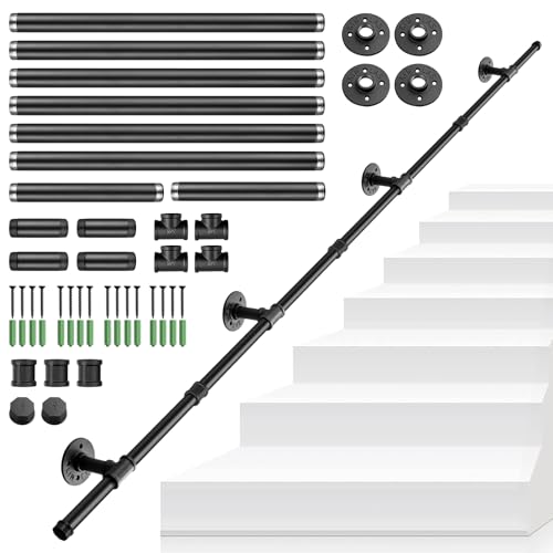 Tanice Ledstång 300 cm trappräcke svart industriell rör klädstång halkfri stödstång för trappor inomhus utomhus för äldre barn