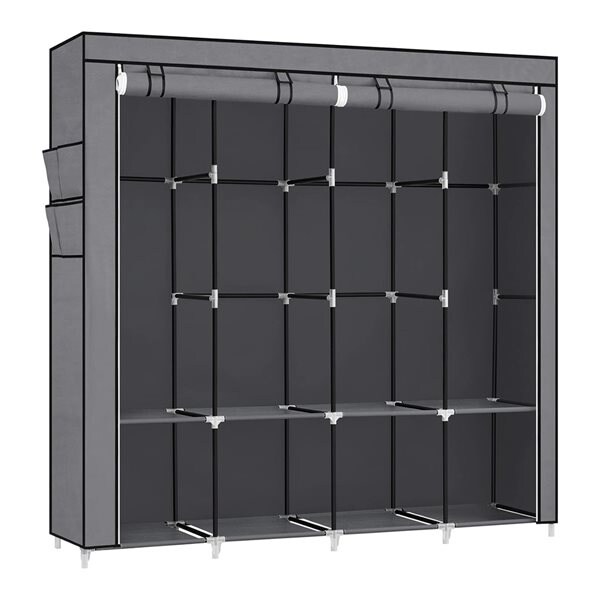 Bärbar öppen garderob, klädställning, fristående garderob med klädstång och tyghyllor