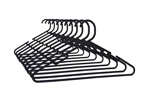1Över 25-pack vuxna svarta plastklädhängare | starka klädhängare för klädstång och garderob | Kostymbyxor byxstång och klämmor | halkskydd | Storlek: 39 x 20 cm