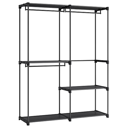 SONGMICS Garderob öppen, klädställning, klädstång, garderob, 43 x 138 x 182 cm, 3 hängfack, mycket utrymme, för sovrum, vardagsrum, svart RYG025B02