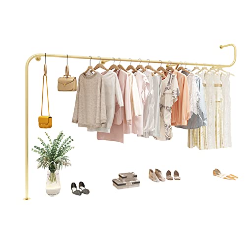Väggmonterad klädställning,modern klädstativ för detaljhandeln,klädstativ för industrirör,metallhållare för klädesplagg för återförsäljning/tvätt/butik/klädaffär/gyllene/250 cm/98,5 tum (gul