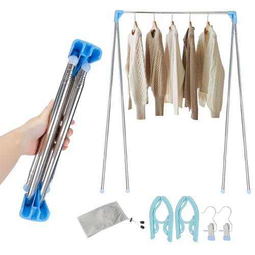 Bärbart hopfällbart torkställ, 13–28 tum bärbart klädstativ, infällbar torkställ, utdragbar klädhängare för sovrum med hopfällbara krokar och klämmor för resor, camping