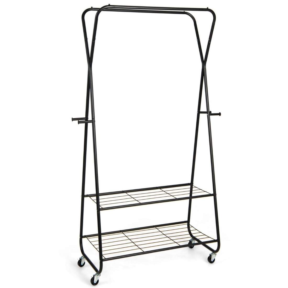 Klädställ på hjul med 2 klädstänger & 2 hyllor & 4 krokar klädstativ