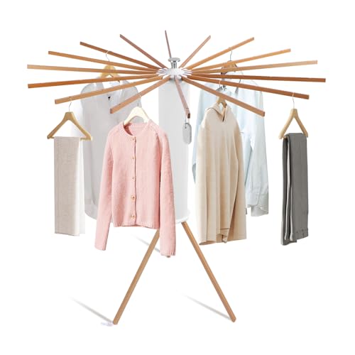 Klädtorkställ, Cypress Trä Vikbara Kläder Airer Octopus Klädstativ Stativ Tvättlina med 16 Hängande Stänger för Hem Inomhus Utomhus Max 40 Kg Kapacitet