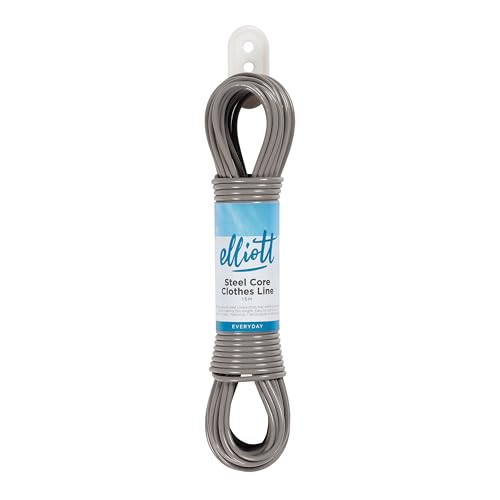 Elliott klädstreck med stålkärna, 15 meter, extra stark, PVC-belagd väder- och rostbeständig tvättledning. Tvätt nödvändig för utomhusbruk, tvättstugor och camping, vit/grå