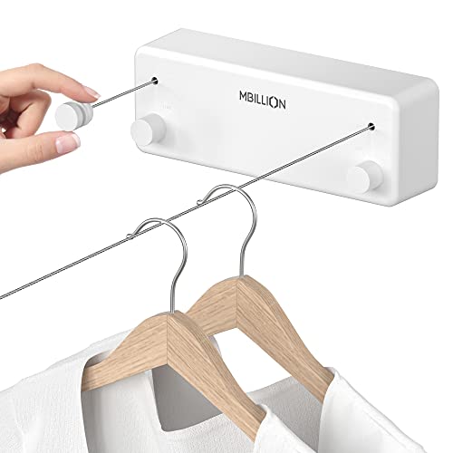 Mbillion infällbar klädstreck 13,8 fot rostfritt stål dubbel klädlina indragande inomhus kraftig infällbar tvättlina väggmonterad (dubbel linje-vit)