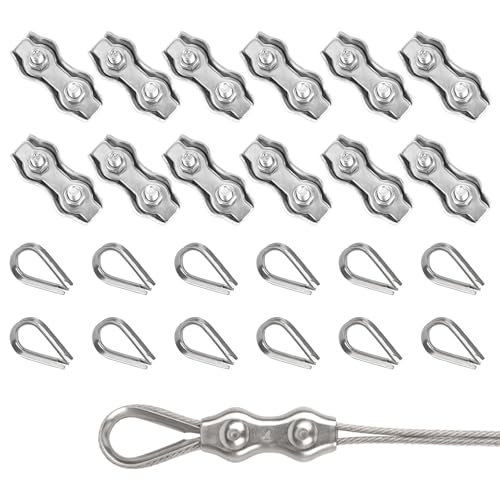 Rybtd 24 st M3 duplex vajerklämmor och M3 kabelbultar, klämmor för rep och metallvajrar, för tält, spännband, klädstreck, vajerklämmor för 3 mm metallkablar