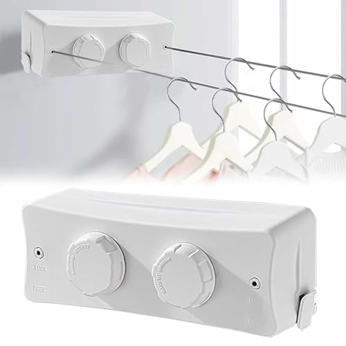 KIAYOO Infällbar tvättlina inomhus utomhus, SUS304 rostfritt slitstarkt torkande tvättlina, väggmonterad torkställning klädstreck för lägenhet hotell sovsal balkong tvättstuga badrum, vit