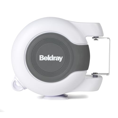 Beldray LA026996 infällbar tvättlina – utomhus utdragbar klädstreck, 12 m torkutrymme, väggmonterbar med svängfäste, kompakt design, hållbar klädtork, naturligt torr tvätt, vit