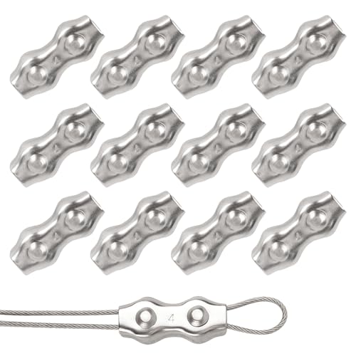 Rybtd 12 stycken vajerklämmor med M4 duplex kabelbultar, för klädstreck, för 4 mm vajrar