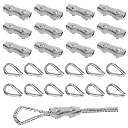 Rybtd 24 st M5 duplex vajerklämmor och M5 kabelbultar, för rep och metallvajer, för tält, spännband, klädstreck, vajerklämmor för 5 mm metallkablar