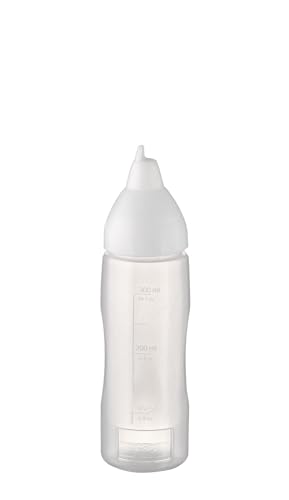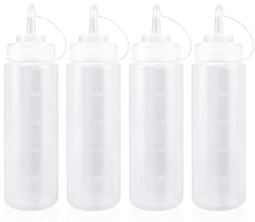 XUHN Klämflaska med lock 4 stycken 350 ml squeeze flaska av plast Condimentflaskor med skala såsflaska transparent doseringsflaska för ketchup återanvändbar med tratt