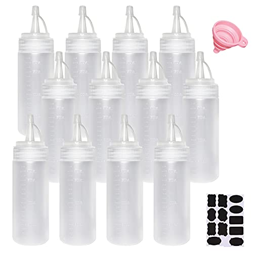 Juncture 12-pack 200 ml (74 oz) kläm-såsflaskor i plast med vridlock och fästingmärken klämflaska för smaktillsats, pigmentklämflaska för målning