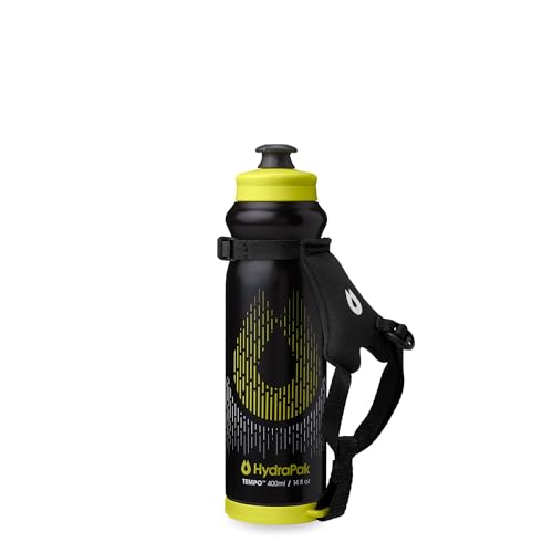 HydraPak Tempo Pro 400 ml – handhållen klämflaska för träning och race dagars hydrering med avtagbar rem (400 ml/13 oz) – svart
