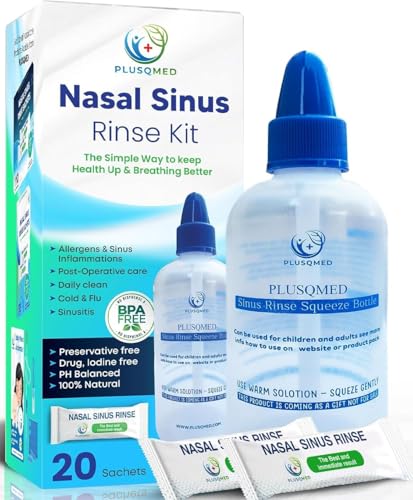 Sinus sköljningskit, klämflaska, Neti kruka, +20 saltpåsar, original plusqmed, nässkölj, sinussköljning, vuxna, barn, näsdusch för näsrengöring och nässpolning,