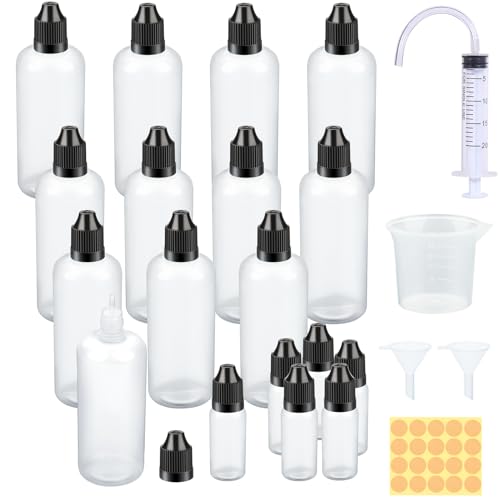 20 stycken nålflaskor, 5 ml/10 ml doseringsflaska, liten, klämflaska med nålspets, limflaska, tom, applikatorflaska med 4 pipetter för lim, smörjmedel, pigment