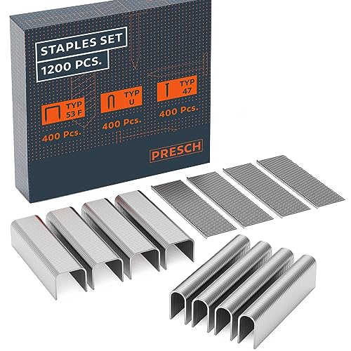 Presch klammer för klammerpistol 1200 st - Klammer inkl. klammer typ 53F, U-klammer och spik - platta trådklammer för handtacker