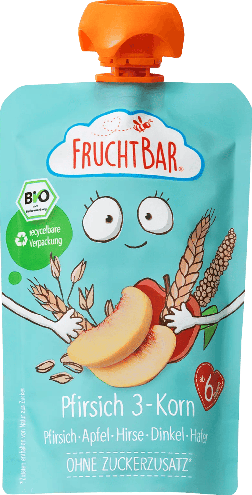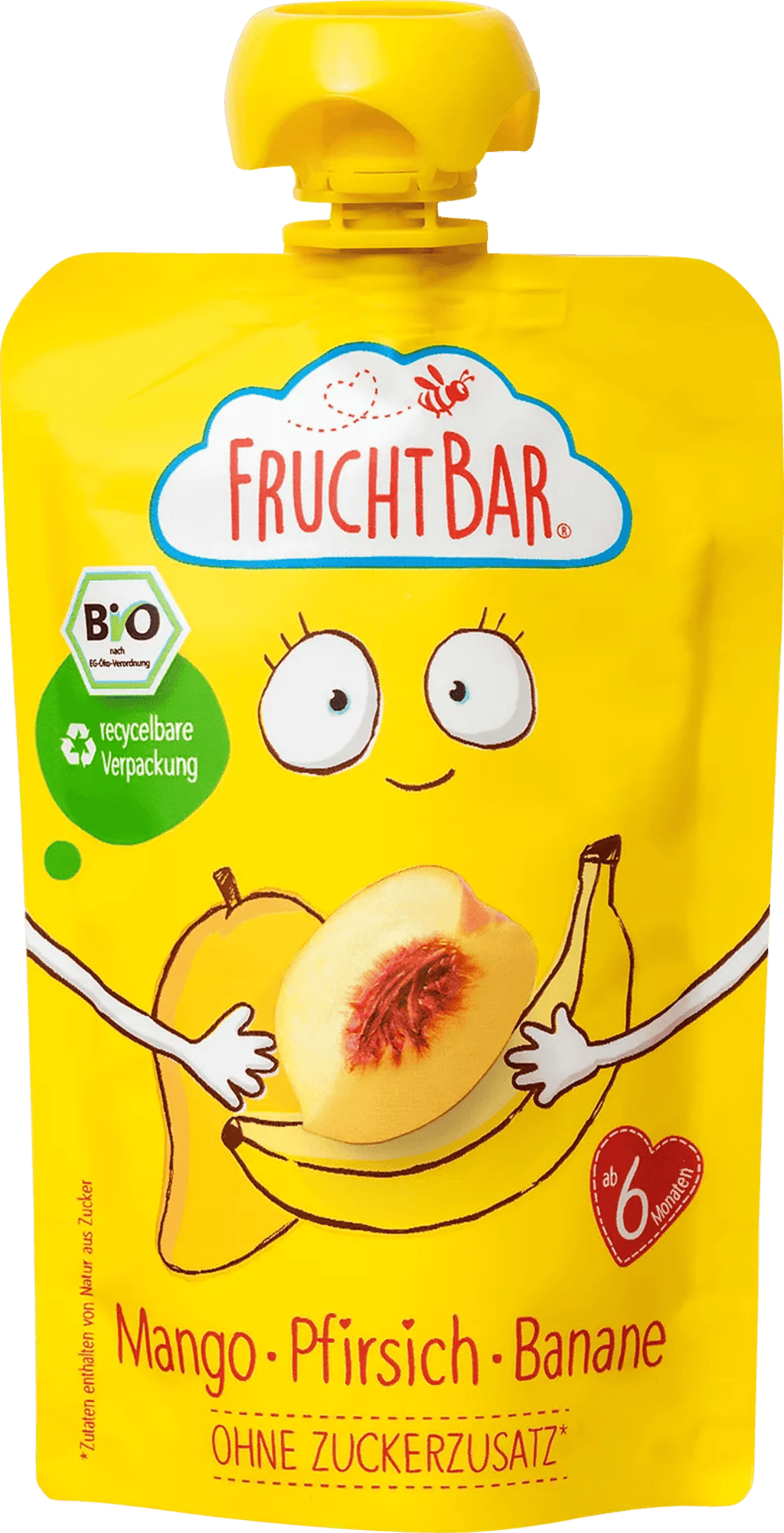 FRUCHTBAR Klämmisar Mango-Persika-Banan Ekologisk - 100 g