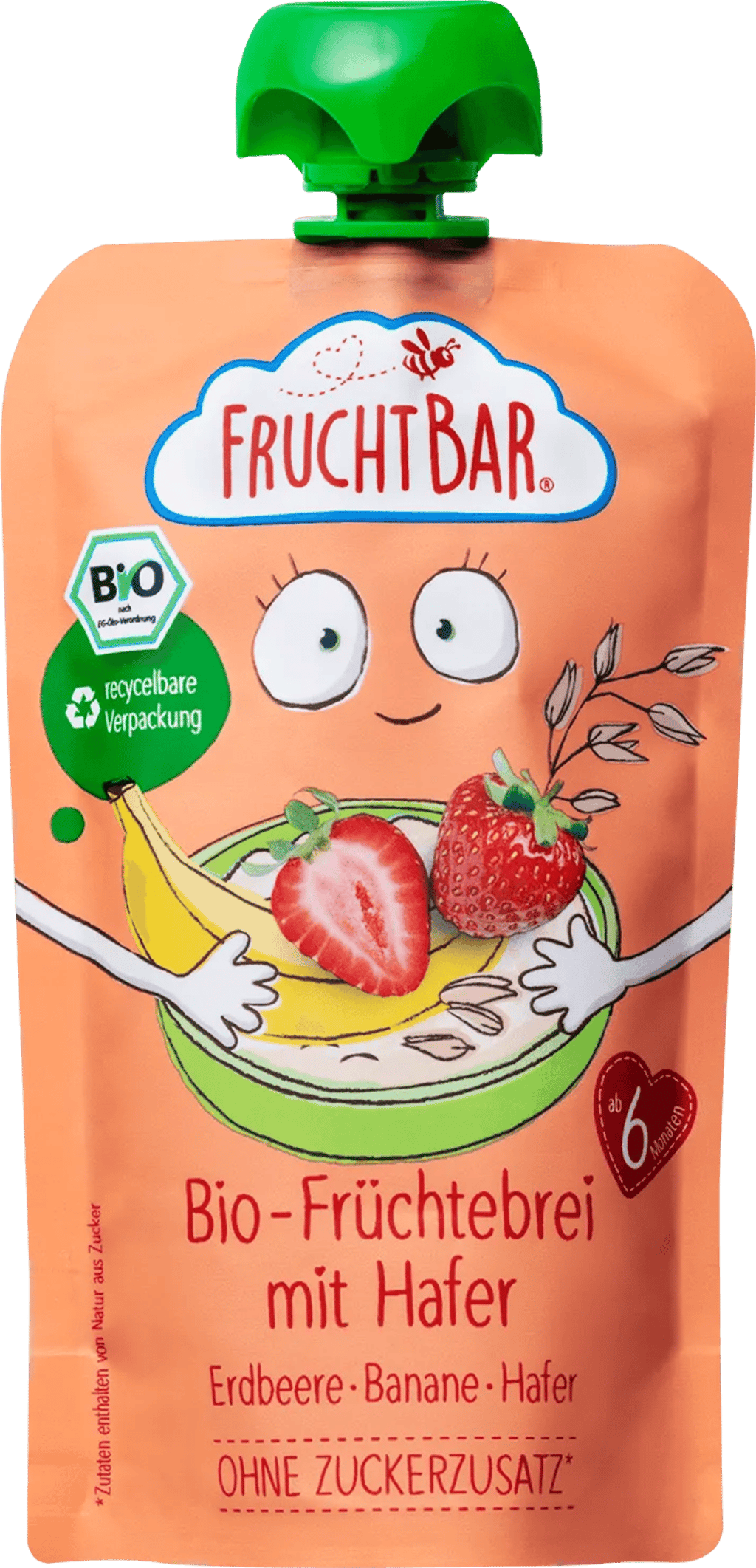 FRUCHTBAR Klämmisar Fruktgröt med Havre, Jordgubbs-banan Ekologisk - 120 g