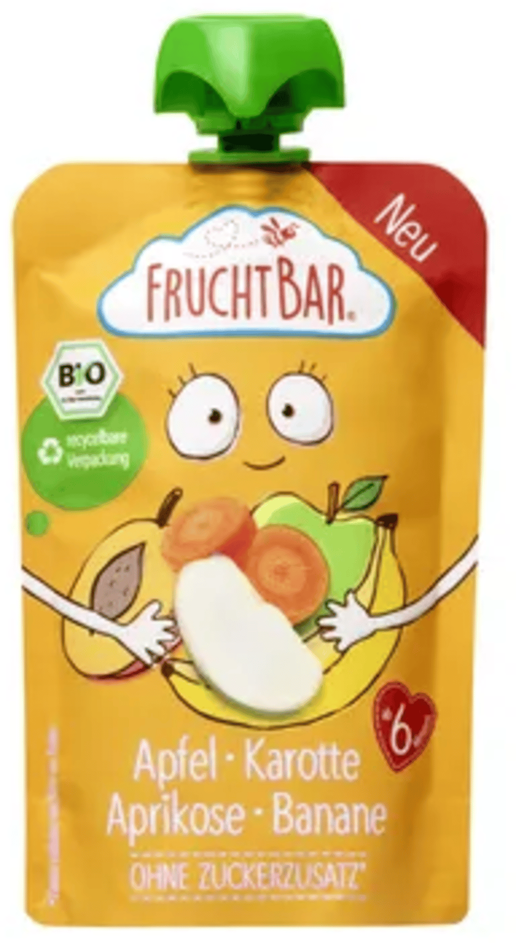 FRUCHTBAR Klämmisar Äpple-Morot-Aprikos-Banan Ekologisk - 100 g