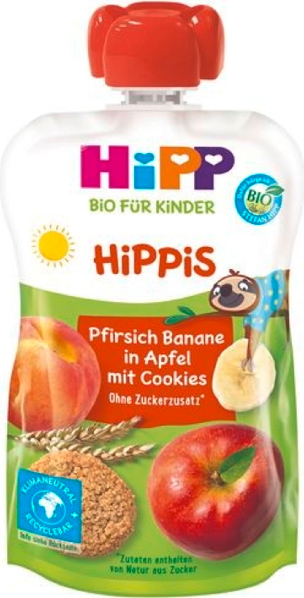 Klämmisar HiPPiS Ekologiska - Fullkorns persika-banan i äpple