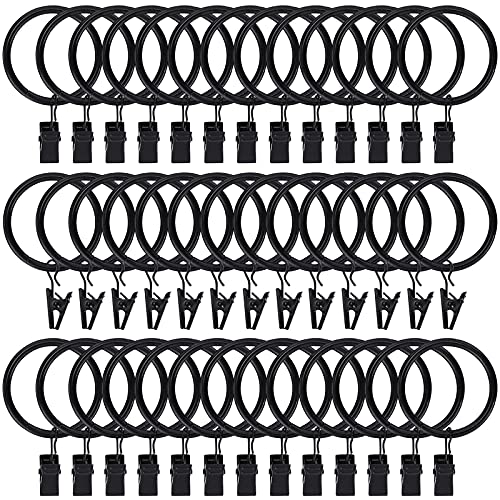 AMZSEVEN 44-pack gardinringar i metall med klämmor, draperiklämmor med ringar, draperiringar 2,5 cm innerdiameter, passar diameter 1,9 cm gardinstång, svart