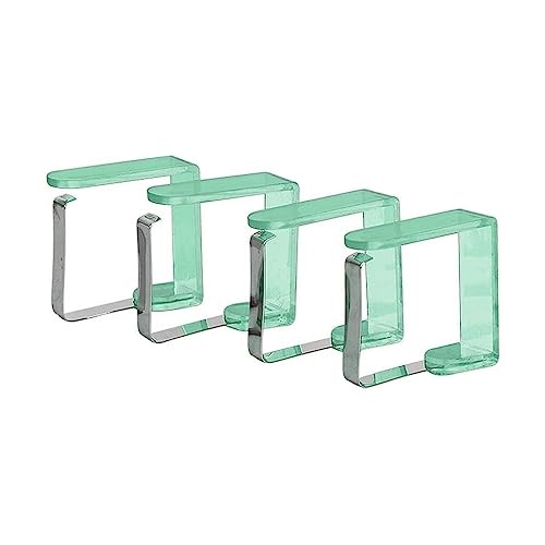 PARENCE Set med 4 bordsduksklämmor - Klämmor av stål och slitstark plast, plastbordsduksklämmor i metall - transparent