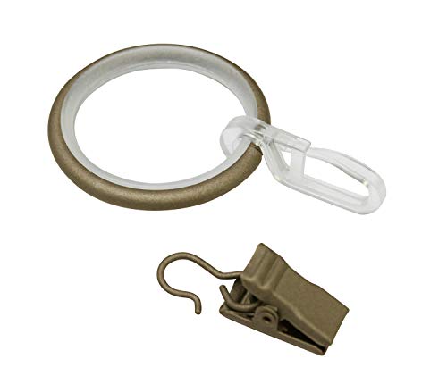 GARDINIA gardinringar med glidinlägg, veckkrokar och klämmor, Metall, för Ø 19 mm cappuccino, 10-pack, cappuccino, 3,9/3,0 cm, 10