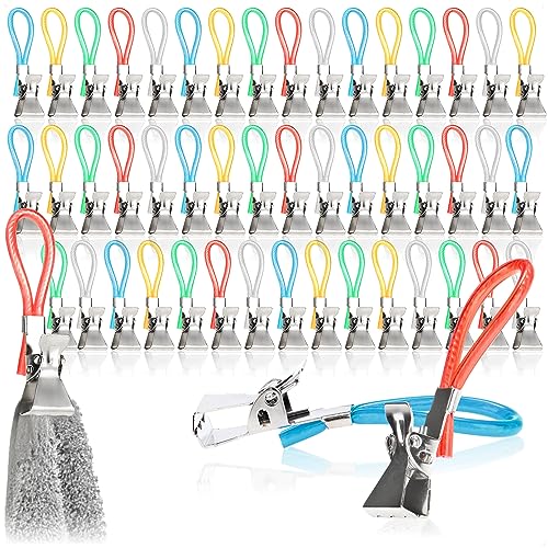 COM-FOUR® 50x handdukshållarklämmor gjorda av plast och förkromad metall - färgglada klämmor för handdukar, tvättlappar, badsvampar - ögla klämmor för grytlappar och kökshanddukar (50 stycken)