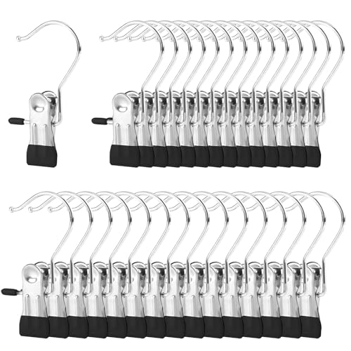 ZEONHEI 30 stycken metallbyxgalgar klädhängare, 28,5 cm byxhängare av metall, rockhängare med justerbara klämmor, klädhängare 360° vridbar krok för underkläder, kjolar, byxor, strumpor, underkläder