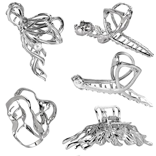 Stora hårklämmor silver hårklämmor set metall hårklämmor damer stora hårklämmor klämmor hårtillbehör för kvinnor flickor (5 stycken)