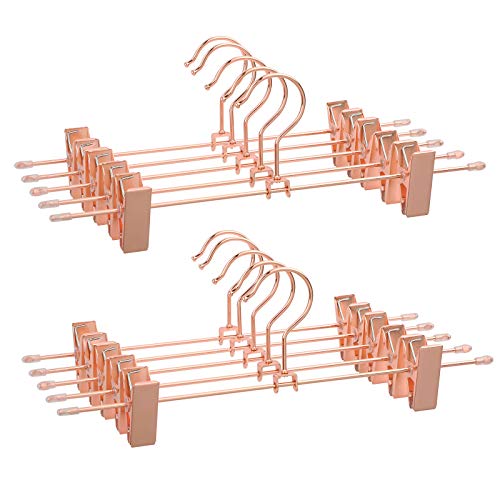 Songmics Byxhängare av metall, 10 stycken, klädhängare, 31 cm, med 2 halkfria klämmor, för kjolar, byxor, underkläder, bygel, utrymmesbesparande, rostfri, roterbar 360°, roséguld CRI46R-10