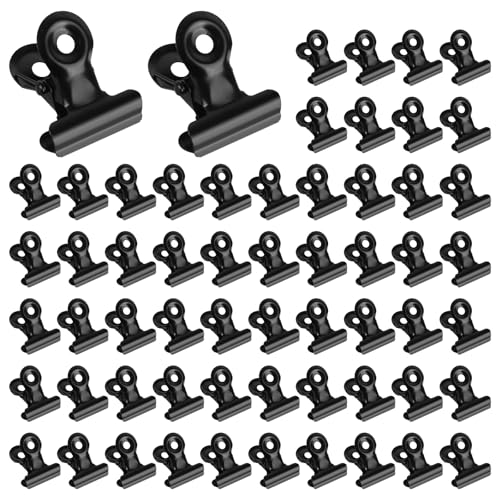 60 små bulldog gem 22 mm klämmor, metall, mini multifunktionella brevklämmor för foton, kontor och kök (svart)