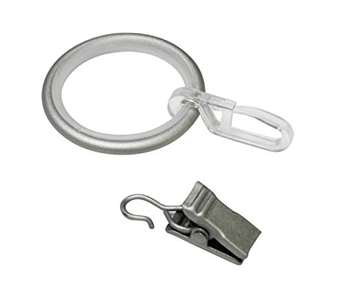GARDINIA gardinringar med glidinlägg, veckkrokar och klämmor, Metall, för Ø 19 mm silver, 10-pack, 3,9/3 cm, 10, 3,9/3,0 cm, 32462