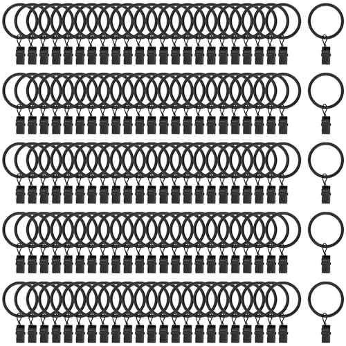 KEILEOHO 120 stycken 32 mm gardinringar med klämmor, gardinringar svart med klämmor, metall gardinklämmor med ringar, ring
