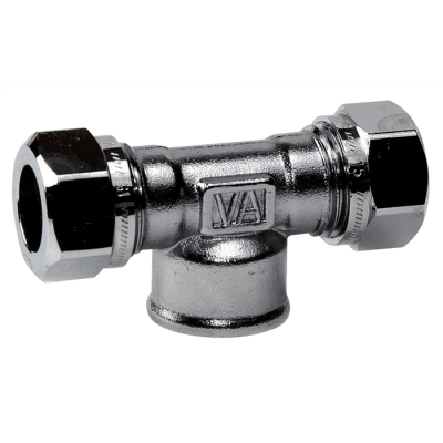 Vatette Klämringskoppling T-rör invändig gänga förkromad 15 mm x R15