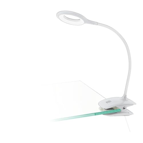 EGLO Cabado LED-klämlampa med batteri och touch-funktion, neutralvitt ljus, dimbar skrivbordslampa av plast, vit klämspot, läslampa med klämma