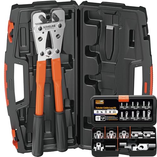 SOMELINE Crimptång kabelskor set, rörkabelsko tång 6–50 mm², ringkabelskor förtennat bulthål kopparklämmor, 50T crimptång, presstång set – presstång – klämtång set med verktygslåda